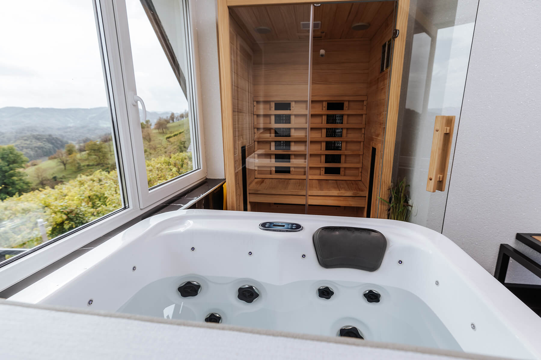 A separate bathroom and pampering area offer a private jacuzzi and an infrared sauna that can be used without any restrictions. The nearby vineyard, the vast Bohorje forests, and the Tower of Love, the tallest wooden lookout tower in the country, may all be seen in their entirety from this location. The apartment is heated and air-conditioned, and there is a private terrace on the ground floor with a BBQ area.