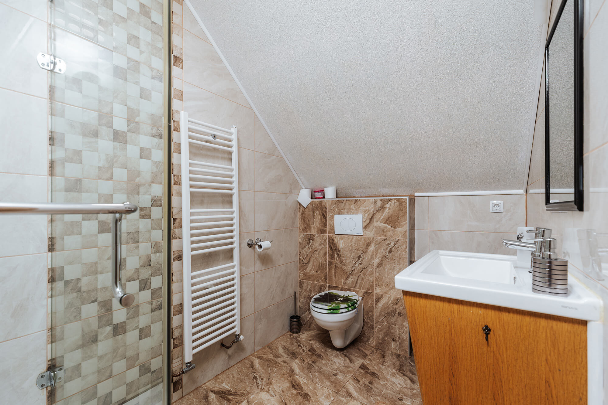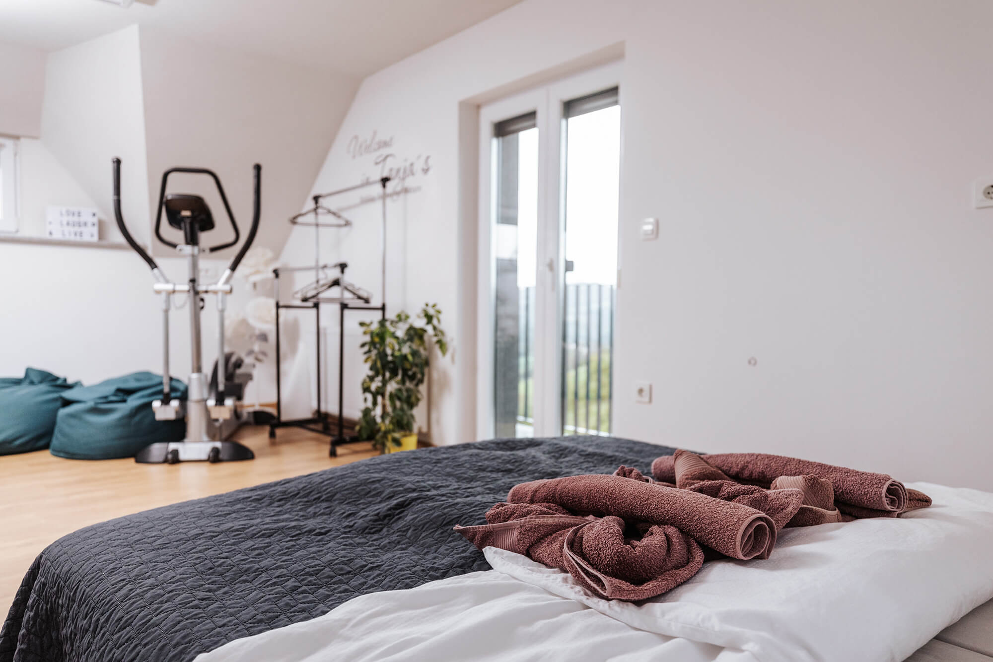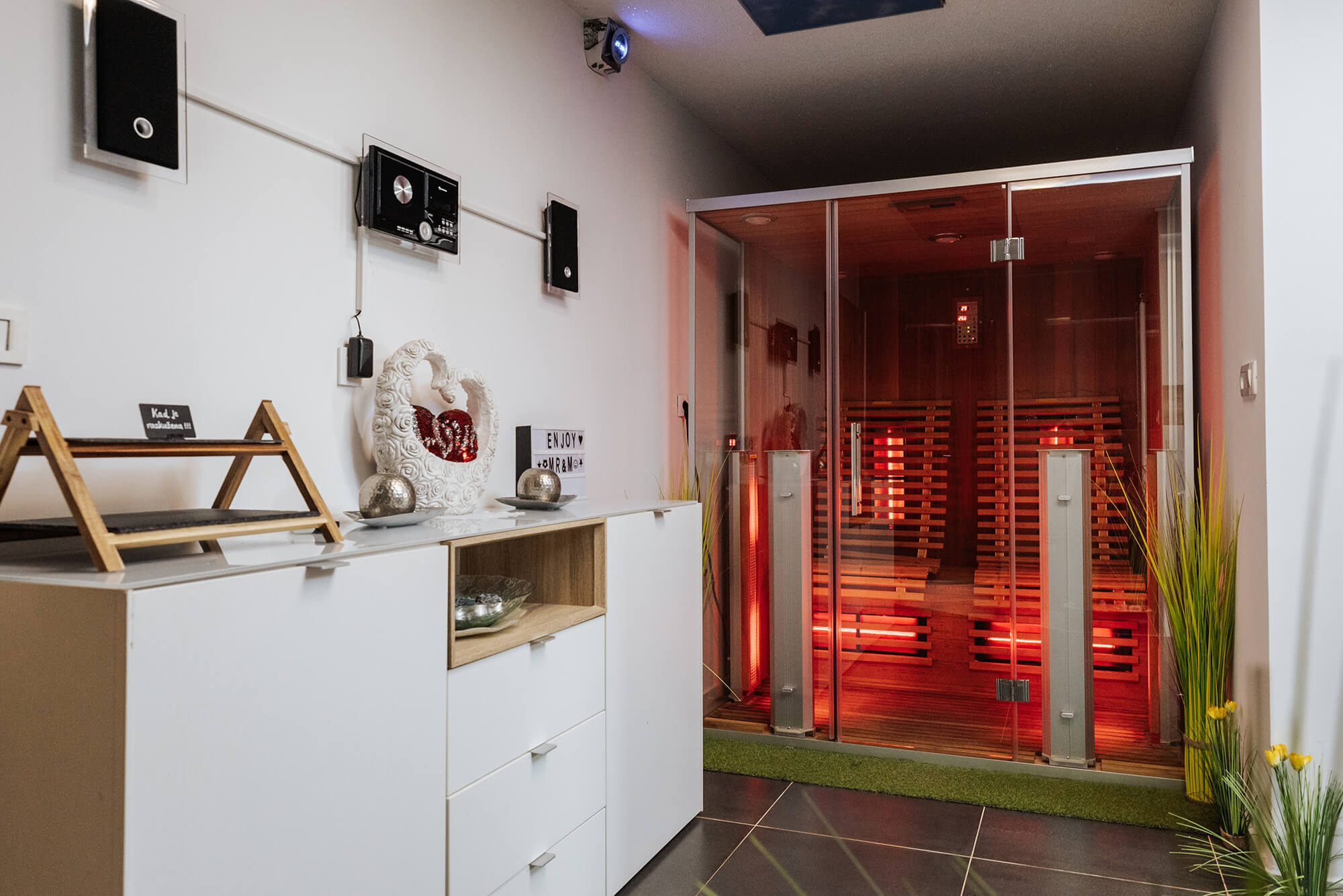 Sodobno grajena hiša v treh nadstropjih na 120 kvadratnih metrih sprejme od 2 do 6 odraslih oseb, kjer se boste počutili kot doma. 3 spalnice, 2 kopalnici, 2 terasi, velika polno opremljena kuhinja z dnevnim prostorom za druženje. Zasebni kletni wellness prostor na 35 kvadratnih metrih s savno in jacuzzijem, prostorom za počitek je samo vam na voljo ves čas bivanja neomejeno.